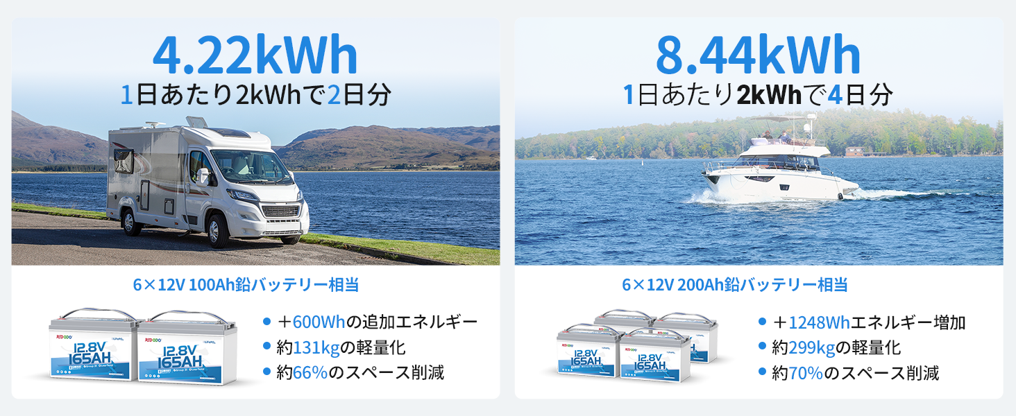 48V(51.2V)バッテリーシステムとして4個直列、または660Ahバッテリーシステムとして4個並列