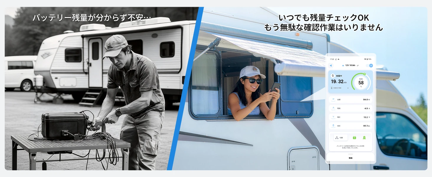 ブルートゥースは、SOC、充放電状態、バッテリー電圧、電流、電力、残容量、バッテリー温度、サイクル時間など、バッテリーの状態を追跡することができます。また、バッテリーの放電を制御し、バッテリーをシャットダウンすることもできます。